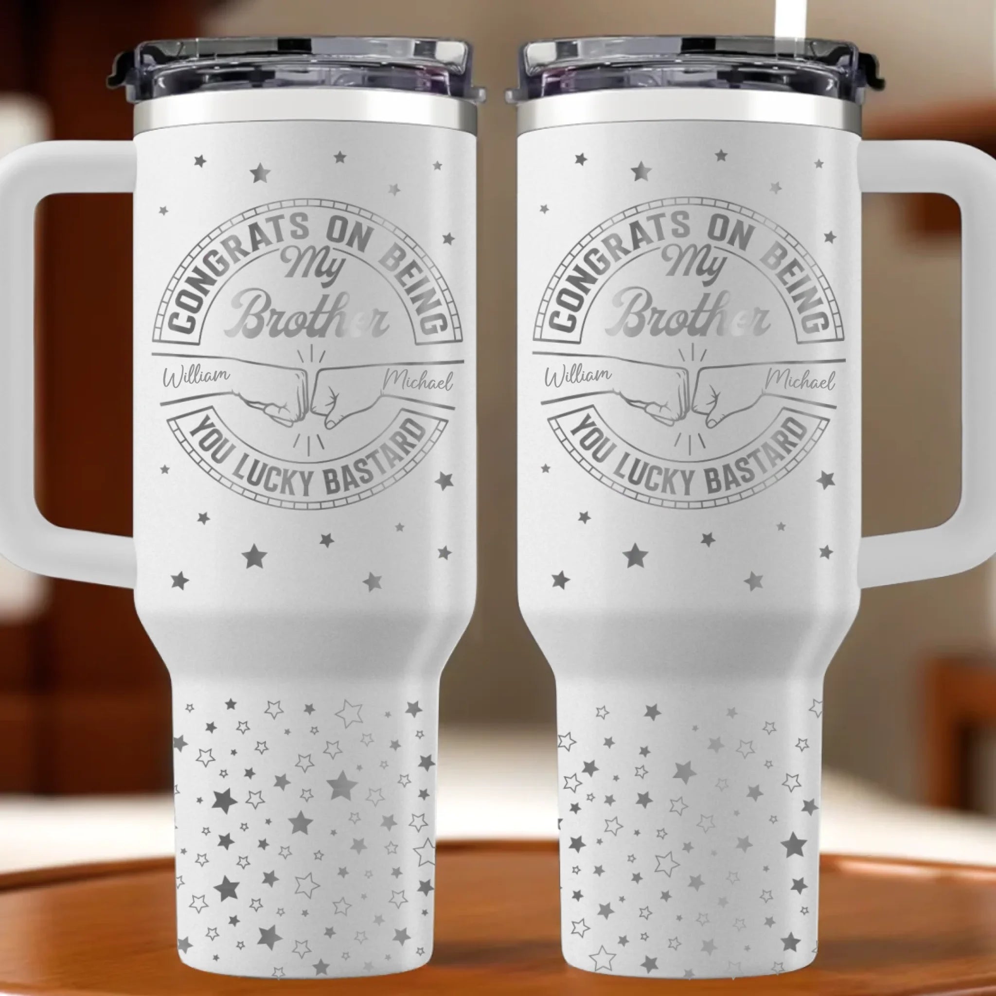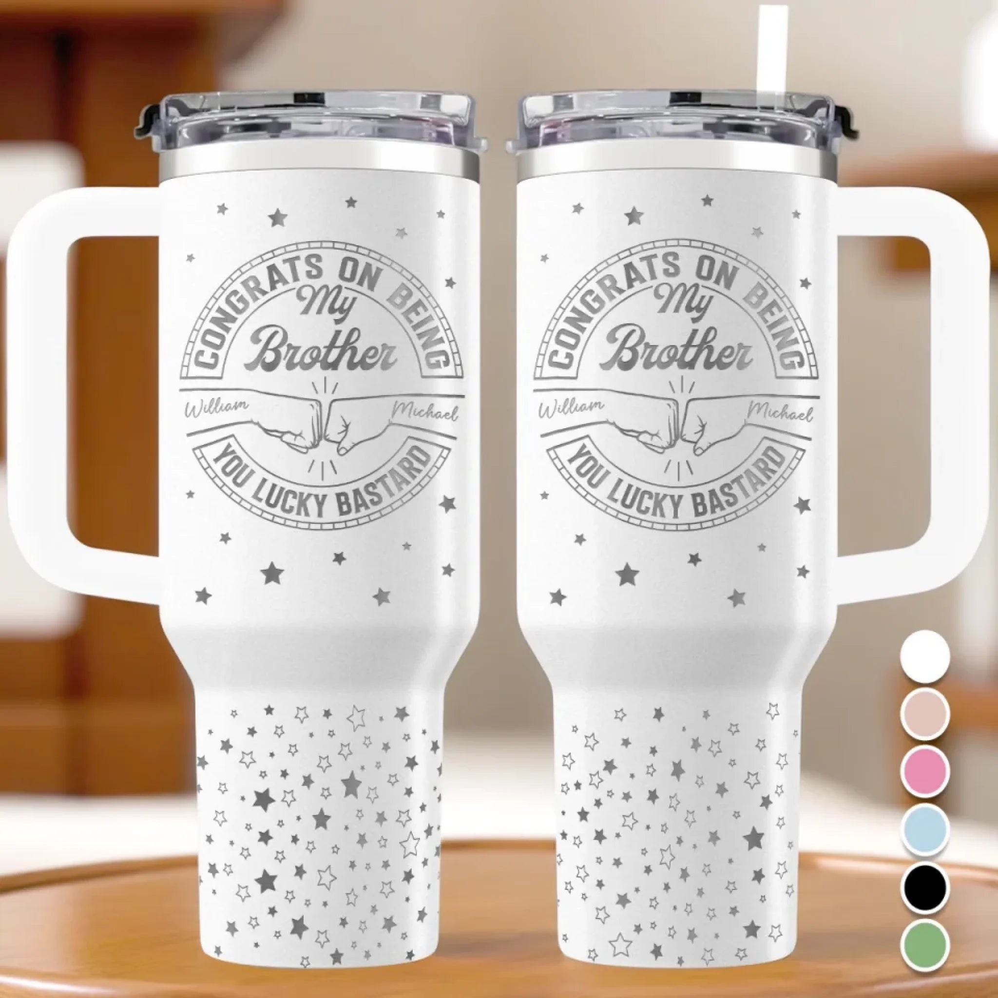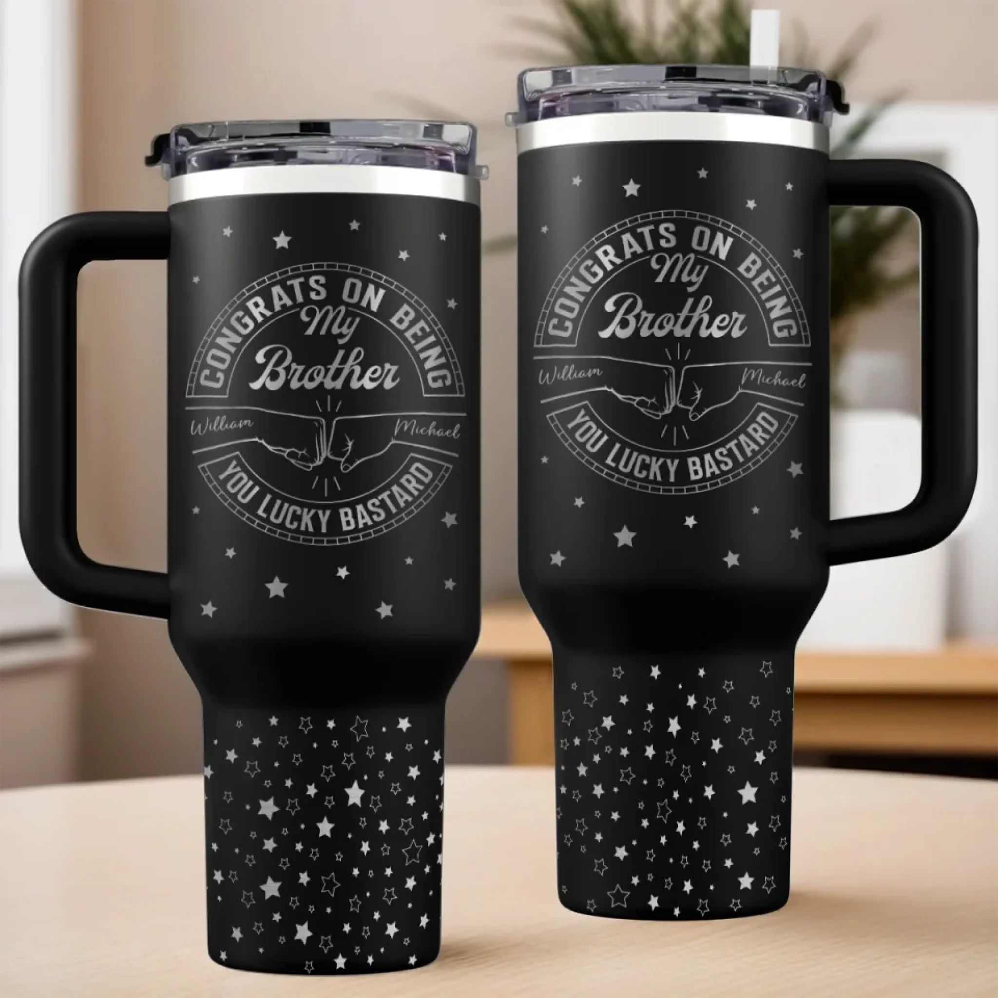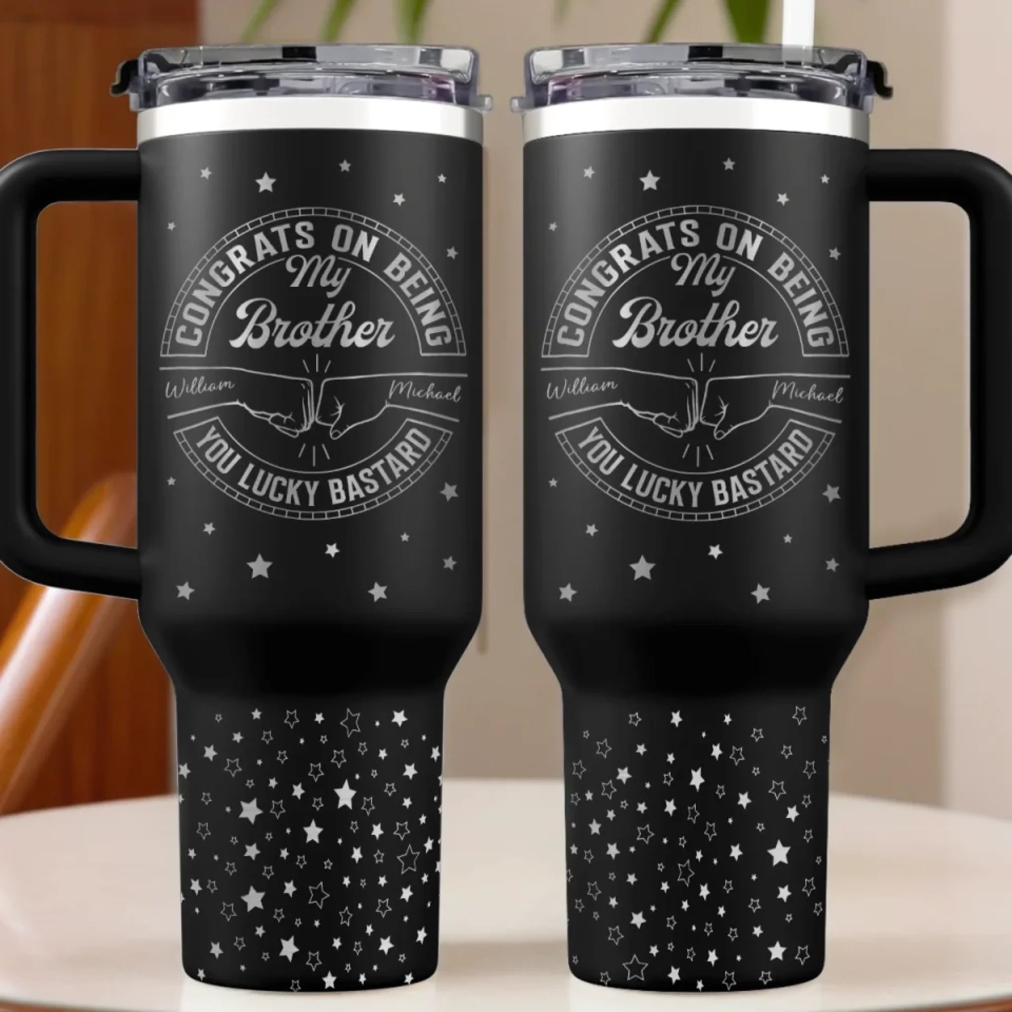 Not Everyone Gets A Brother Like Me, Lucky You - Family Personalized Custom Engraved 40oz Tumbler With Handle - Gift For Family Members, Siblings, Brothers, Cousins, Best Friends