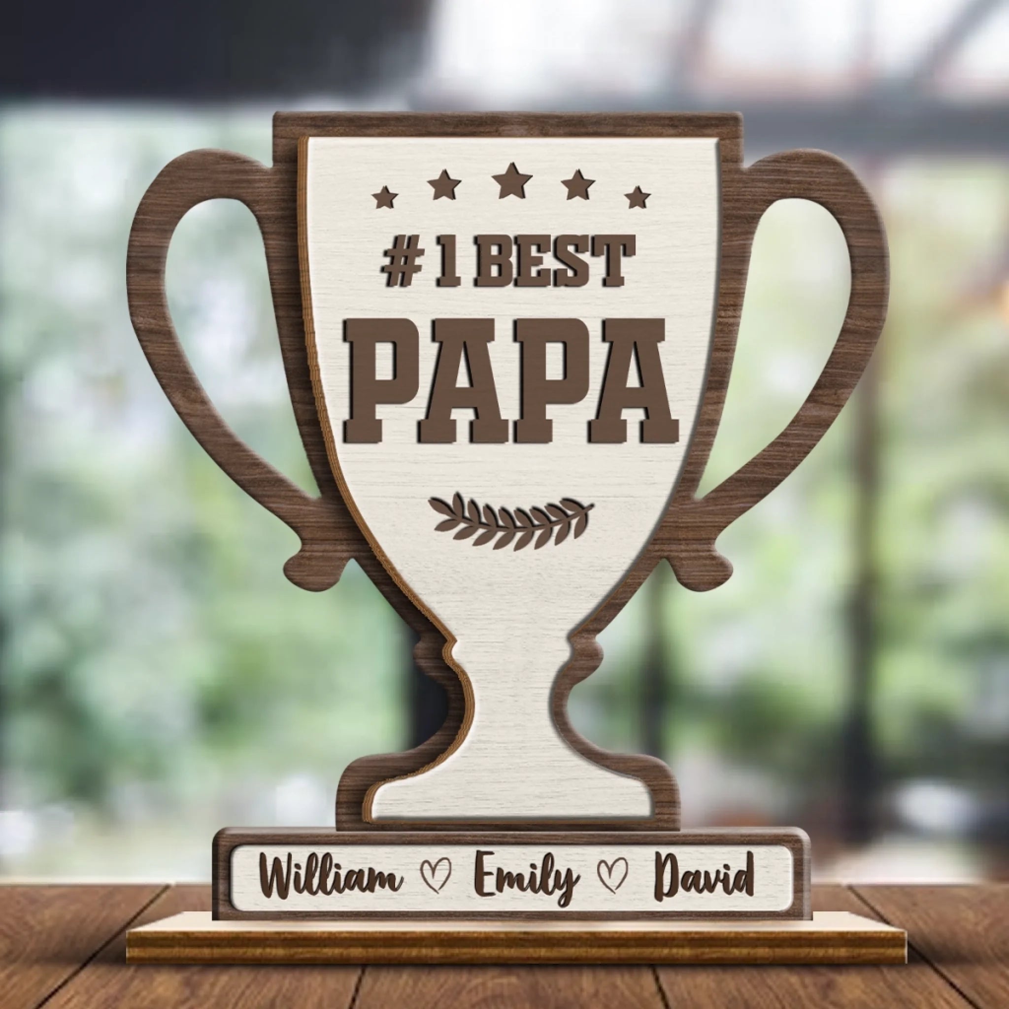Our Champion, Our Dad - Family Personalized Custom 2-Layered Wooden Plaque With Stand - Father's Day, Gift For Dad, Grandpa