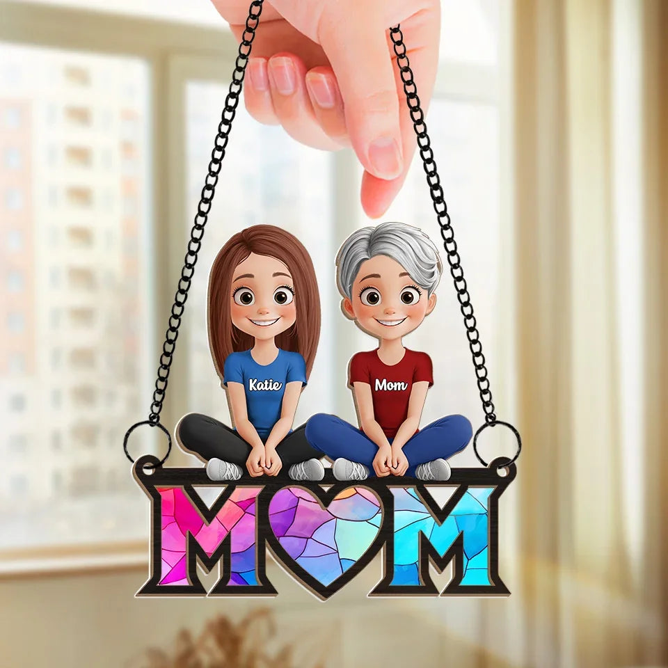 Where Mom Sits, Love Gathers - Family Personalized Window Hanging Suncatcher Ornament - Gift For Mom, Grandma