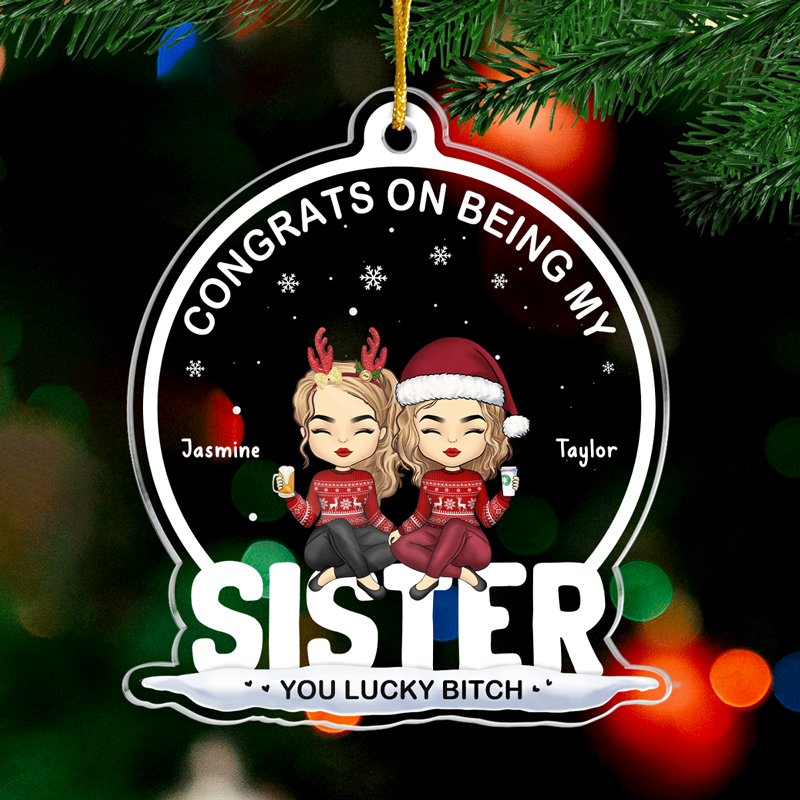 You're Lucky To Have Me - Bestie Personalized Custom Ornament - Acrylic Snow Globe Shaped - Christmas Gift For Best Friends, BFF, Sisters, Coworkers
